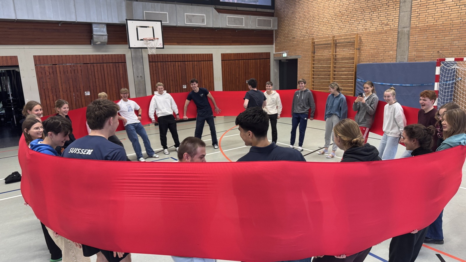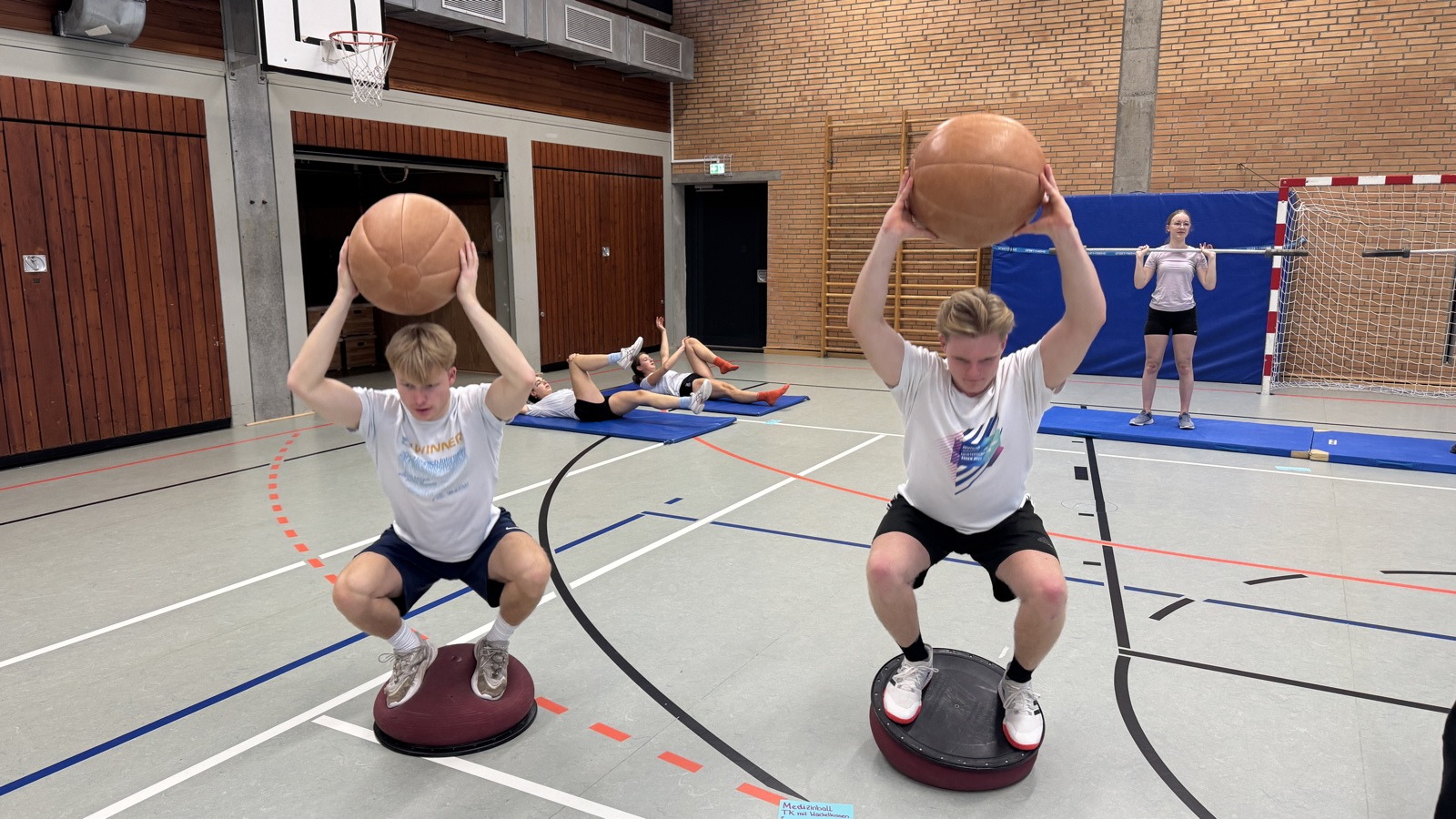 Daneben musste jede der 5 Gruppen eine Sportstunde in der Halle organisieren, die wir dann zusammen ausgeführt haben. Das war ziemlich lustig, weil man in sein eigenes Kindertraining zurückversetzt wurde und z. B. bei Brennball oder Zombieball wieder derselbe Ehrgeiz wie früher entfacht wurde.
