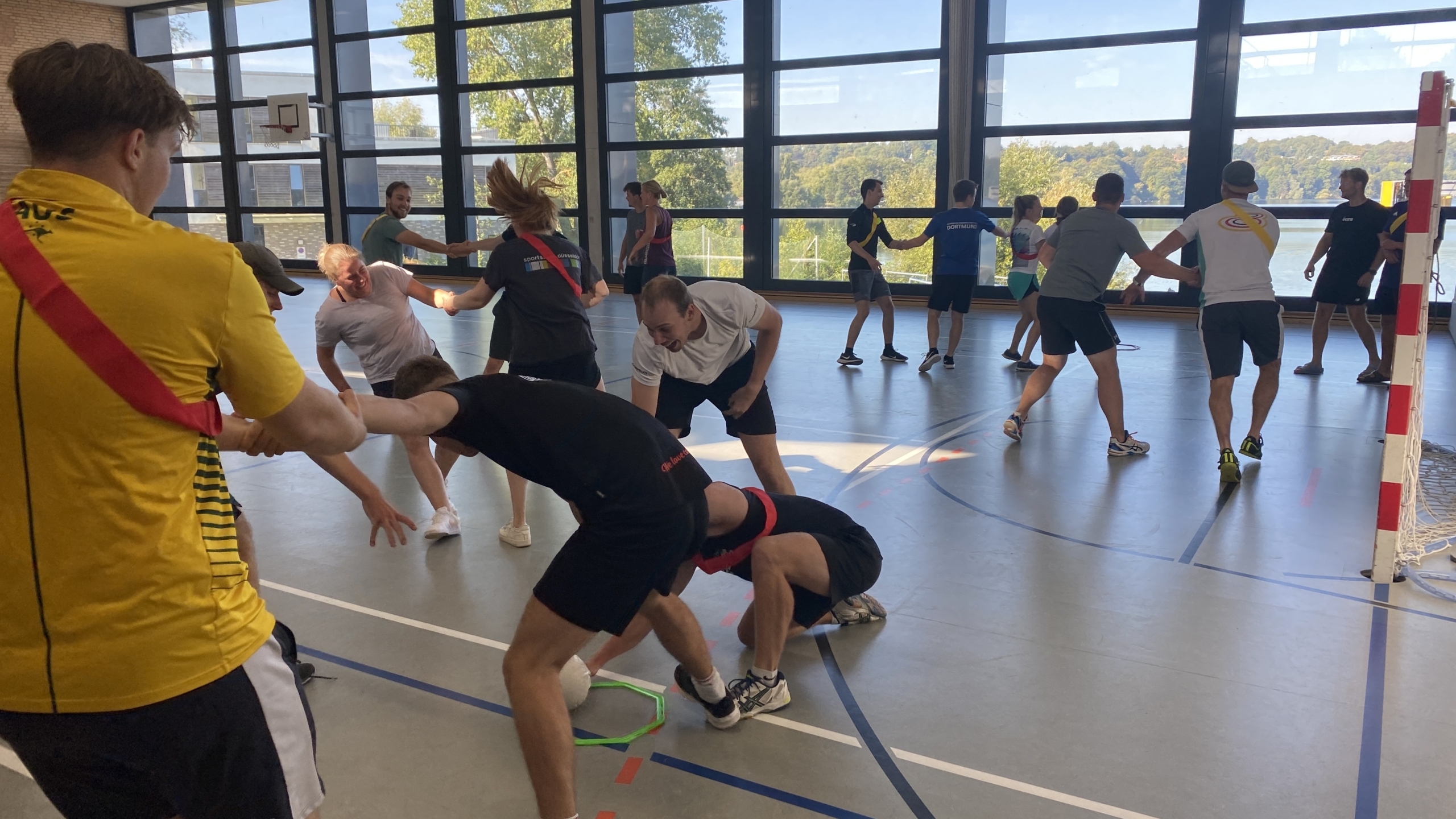 Da Ratzeburg die schönste Sporthalle Norddeutschlands beherbergt, wurden wir im Praxisteil zum Thema Krafttraining (Referent Benedikt Göller) auf mehreren Ebenen gefordert. Mit Besenstielen ausgestattet wurden wir in der technisch-korrekten Ausführung der Tiefkniebeuge geschult, zum anderen sorgte die aufgestaute Hitze der Halle und der Anblick der Panoramalandschaft zu Konzentrationsabrissen und Urlaubsphantasien.