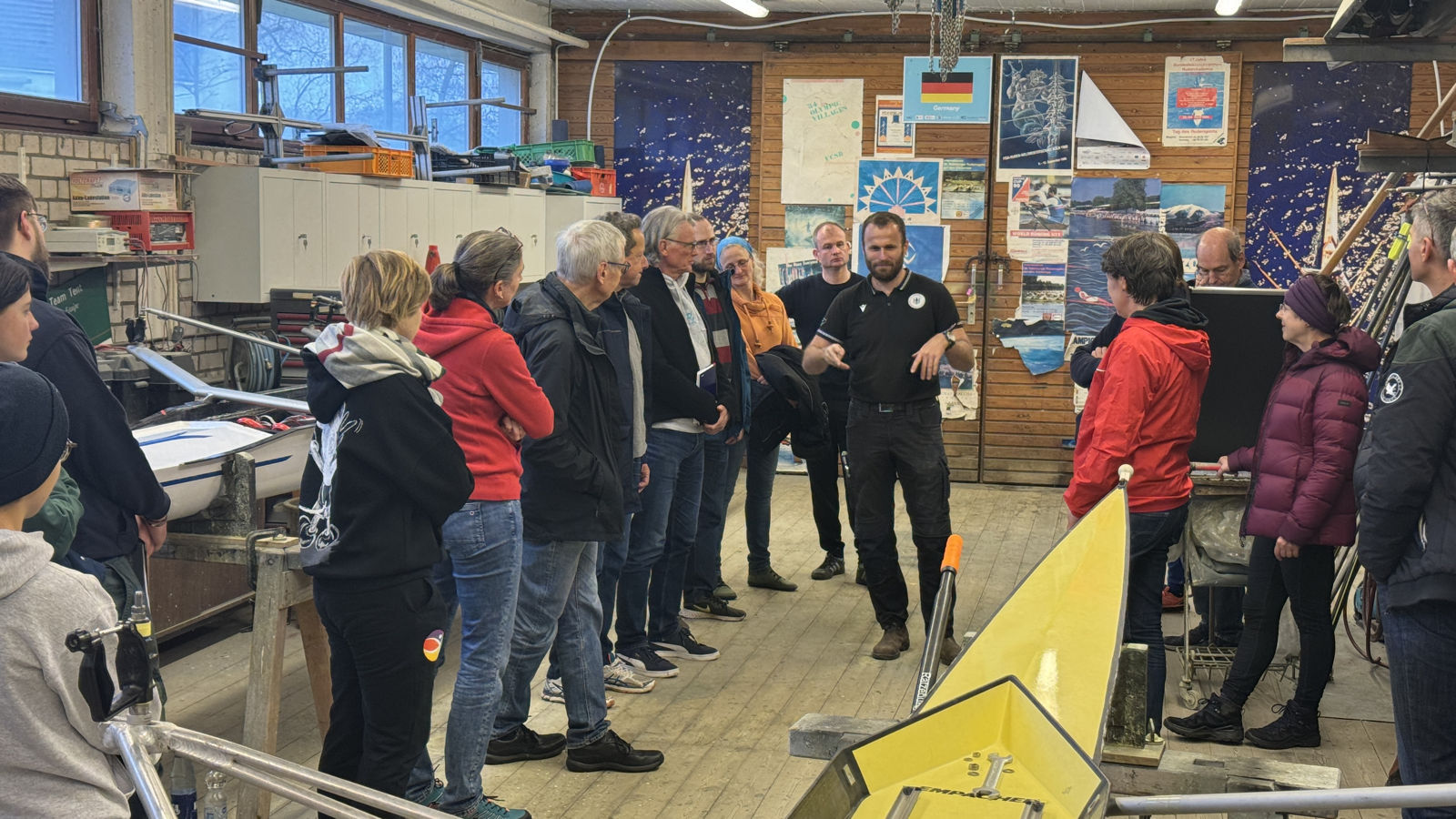 Reinhart Grahn spiegelte mit humorvollem Enthusiasmus für das Woher und Wohin/Weshalb die einzelnen Details der Ruderbewegung. Denn sind weder Kondition noch Carbon vorhanden, empfiehlt es sich, an der Technik zu arbeiten. In der Bootswerkstatt legte Jost Schömann-Finck den Trimm-Fokus auf die Einstellung der Dollen. Und mancher Weihnachtswunschzettel wurde neben den Wollsocken um ein Dollenstiftmessgerät erweitert.