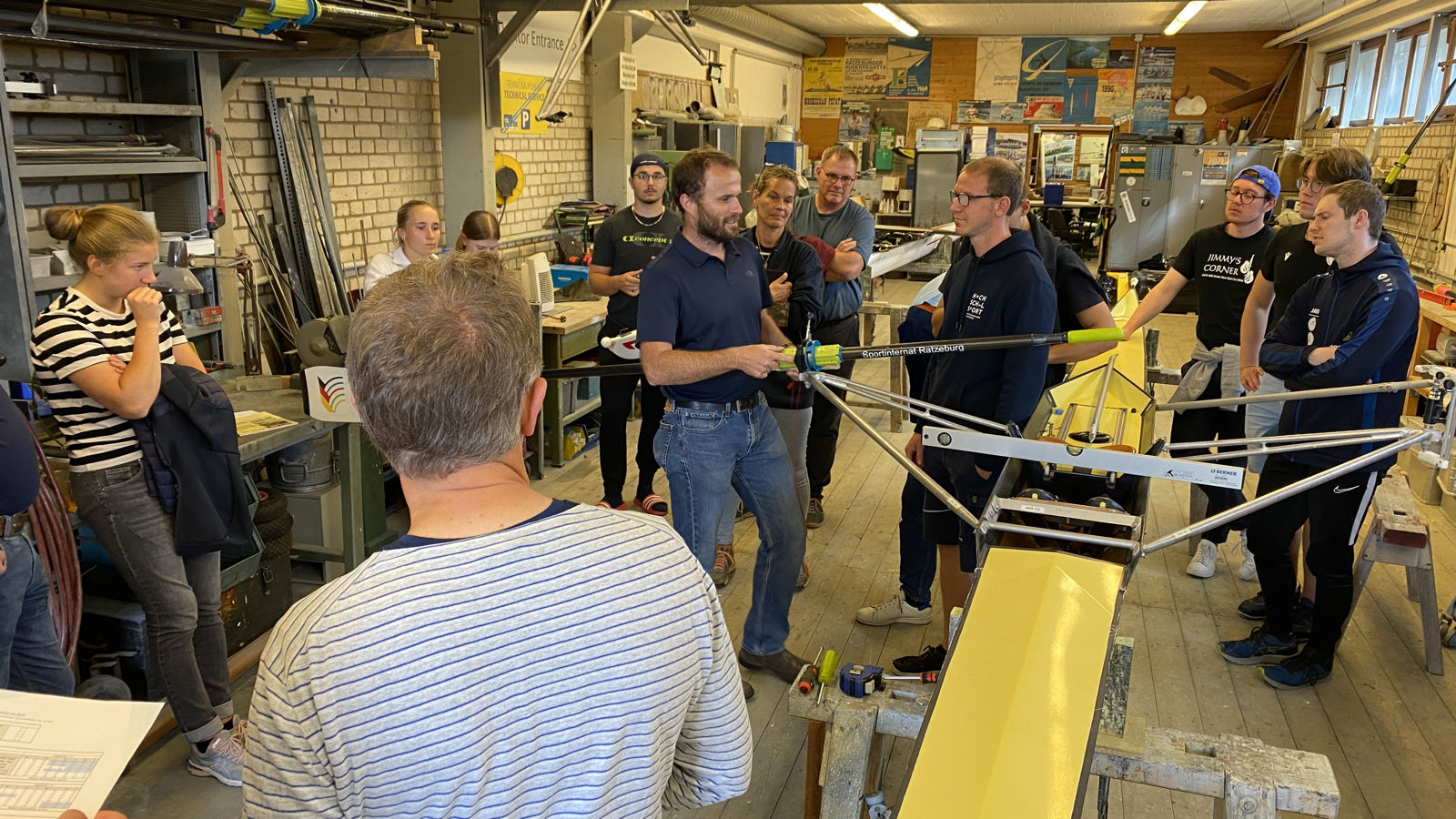 Einen interessanten und lehrreichen Nachmittag verbrachten wir gemeinsam mit Jost Schömann-Finck in seiner Bootswerkstatt. Die unterschiedlichen Blattformen, das Einstellen der Dollen sowie die Handhabung der „Wahrheit“ wurden uns praxisnah vermittelt.