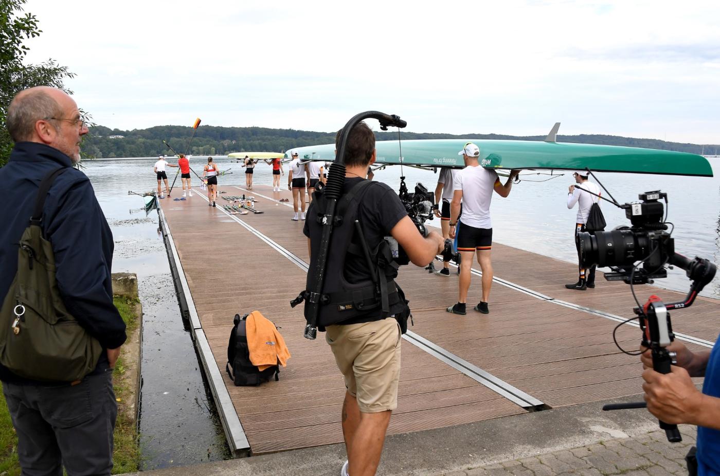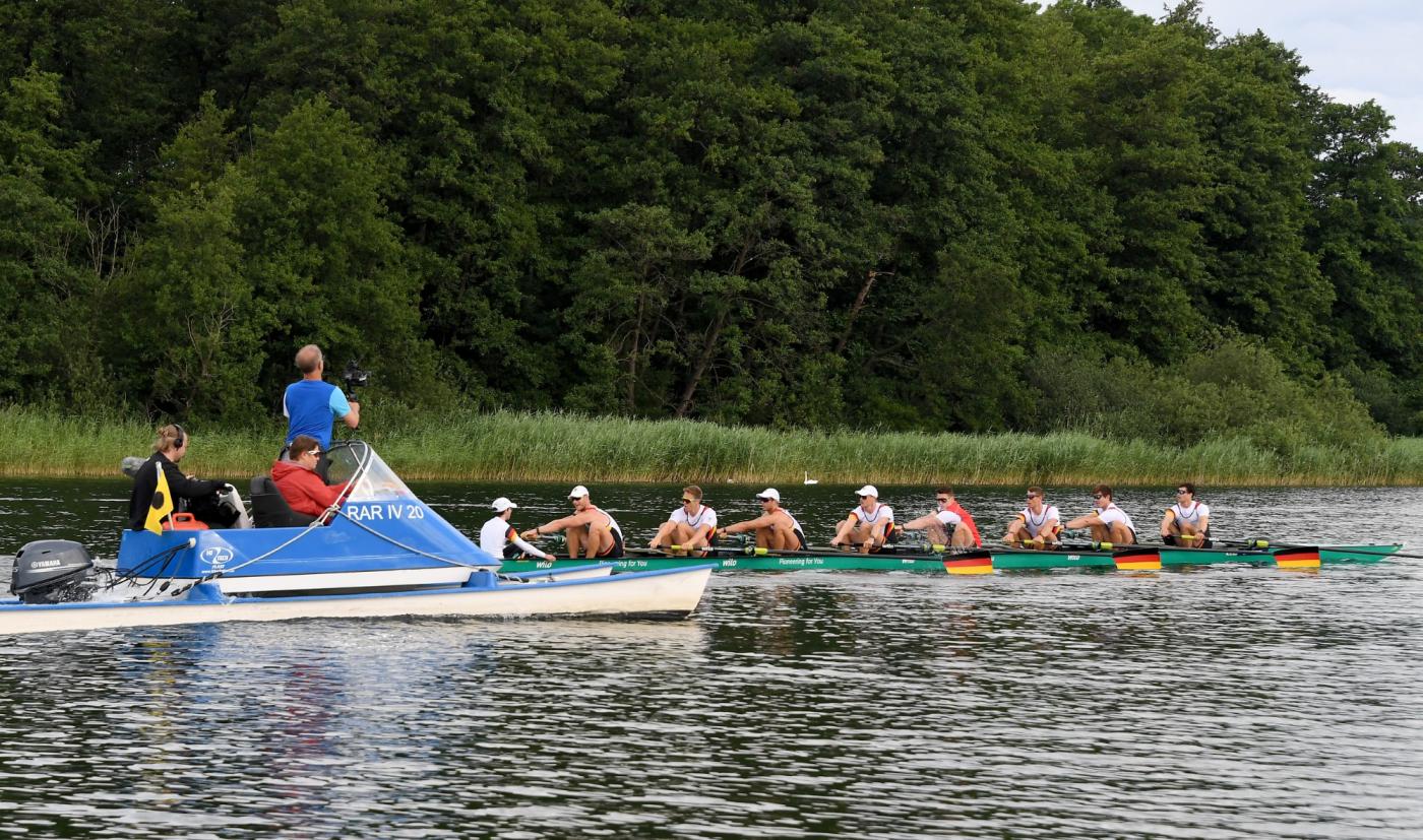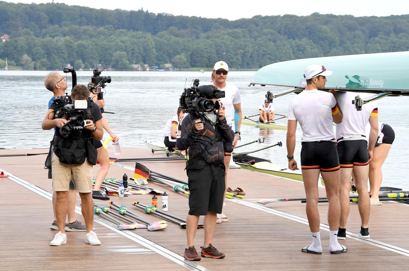 Auf reges Interesse stieß der Medientag der Ruder-Nationalmannschaft im Rahmen des abschließenden Trainingslagers (UWV 2) vor den Olympischen Spielen in Paris. 15 Journalisten, darunter vier TV-Teams, nutzten am Mittwoch (10. Juli 2024) die Gelegenheit und kamen in die Ruderakademie Ratzeburg. Am Morgen konnten die DRV-Boote beim morgendlichen Training vom Wasser aus aufgenommen werden.