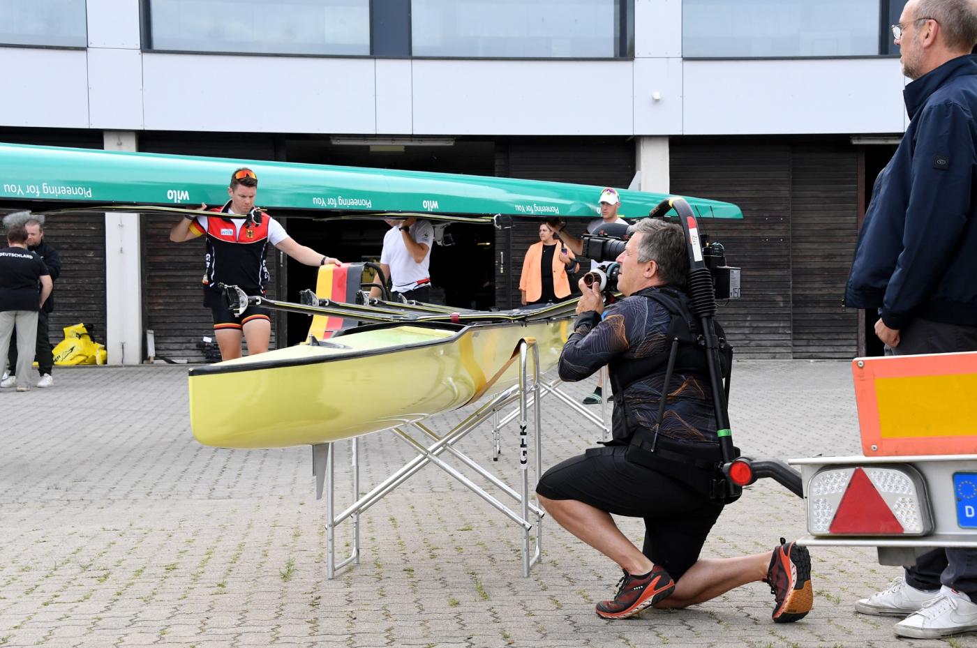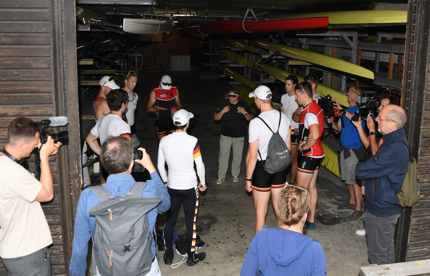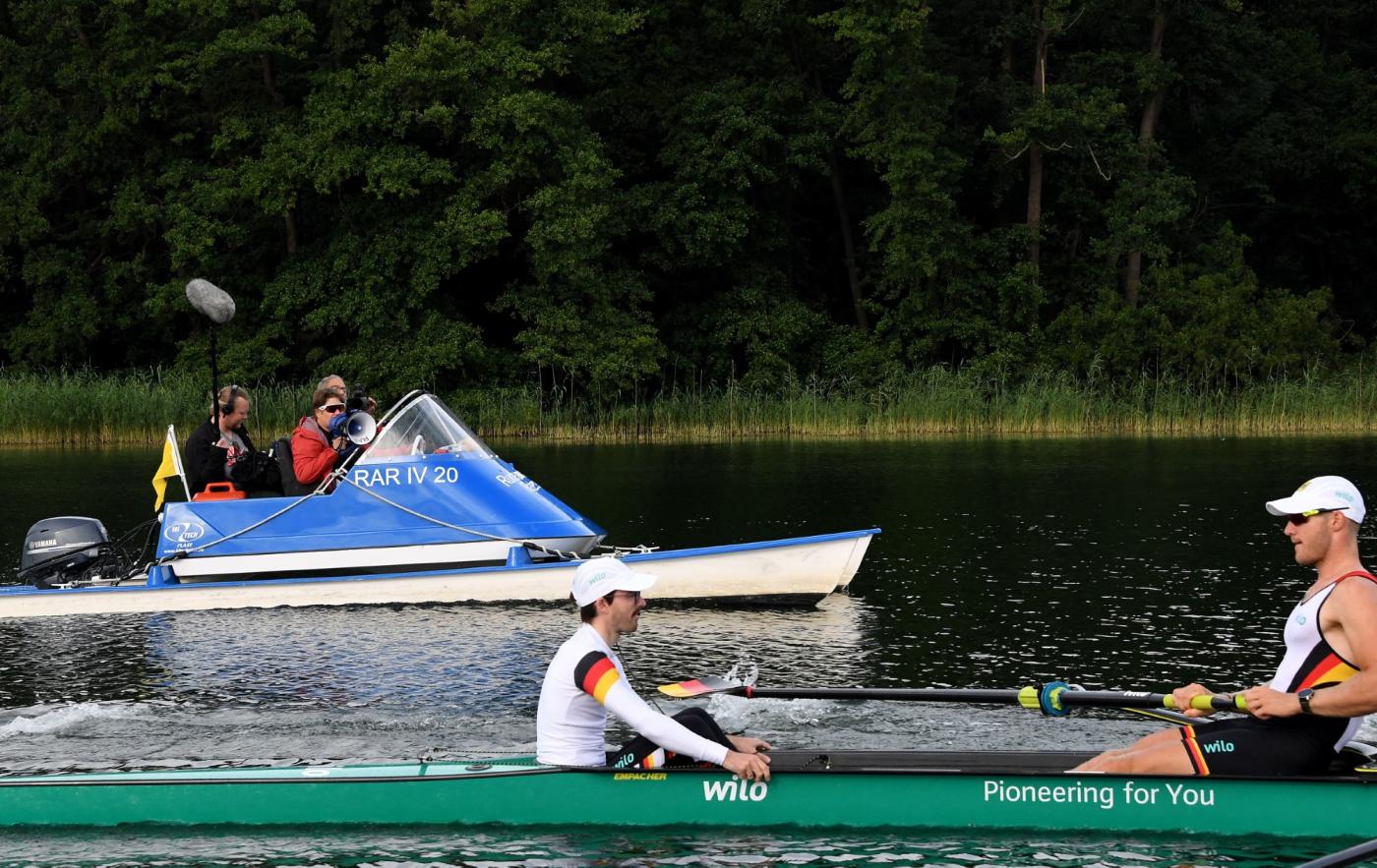 Auf reges Interesse stieß der Medientag der Ruder-Nationalmannschaft im Rahmen des abschließenden Trainingslagers (UWV 2) vor den Olympischen Spielen in Paris. 15 Journalisten, darunter vier TV-Teams, nutzten am Mittwoch (10. Juli 2024) die Gelegenheit und kamen in die Ruderakademie Ratzeburg. Am Morgen konnten die DRV-Boote beim morgendlichen Training vom Wasser aus aufgenommen werden.