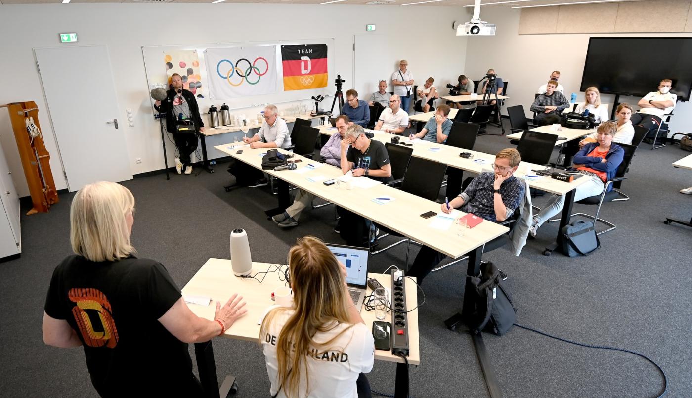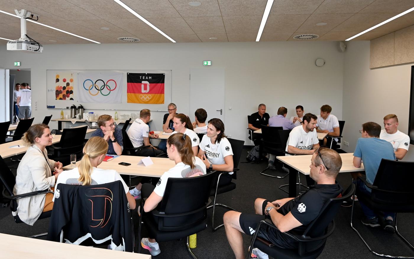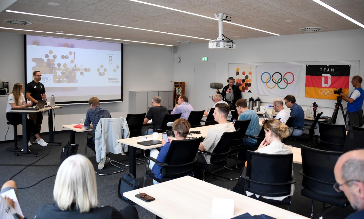 In der folgenden Pressekonferenz nannte Cheftrainerin Brigitte Bielig auf Nachfrage auch das Ziel für die Spiele: „Wir wären erfolgreich, wenn es uns gelingt, wie 2021 in Tokio zwei Medaillen zu holen, und wenn wir die Zahl der Finalteilnahmen (Anm.: 2021 drei) steigern. Dann wären wir näher an die Weltspitze herangerückt.“ Bei Edelmetall denkt Bielig natürlich an den Männer-Einer und auch an den Frauen-Doppelvierer. Sportdirektor Mario Woldt erinnerte daran, dass nach den letzten Spielen durch einen großen Aderlass ein Neubeginn mit vielen jungen Sportler:innen nötig war. „Die Entwicklung seitdem ist gut, auch wenn wir keineswegs in allen sieben Bootsklassen, für die wir uns qualifiziert haben, zu den Medaillenkandidaten zählen. Medaillen sind wichtig, aber auch, wie wir unseren Sport aufstellen und weiterentwickeln in Richtung Los Angeles 2028. Mit Brigitte als Cheftrainerin ist das gut gelungen“, sagte Woldt. Die internationale Konkurrenz sei stärker geworden, kleinere Nationen wie Irland und die Schweiz hätten aufgeholt.