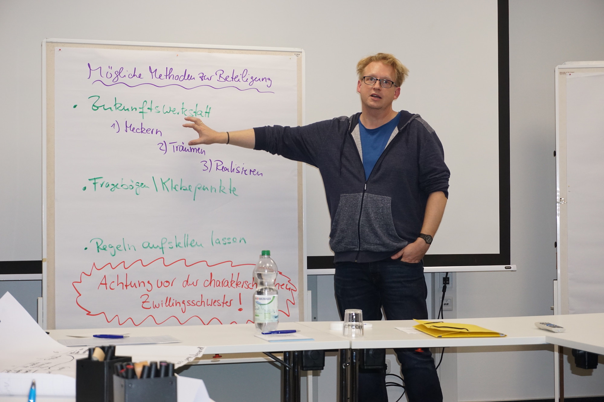 Nach dem Mittagessen und einer Pause ginge es weiter mit einem Workshop zum Planen von Wanderfahrten und Freizeiten von und mit Andreas. Wir haben das Planen einer Freizeitaktivität, in diesem Fall einer Wanderfahrt, in Phasen und Aktivitäten zerlegt. Diese wurden dann untereinander aufgeteilt und so in Gruppen detailliert ausgearbeitet und mit Leben gefüllt.