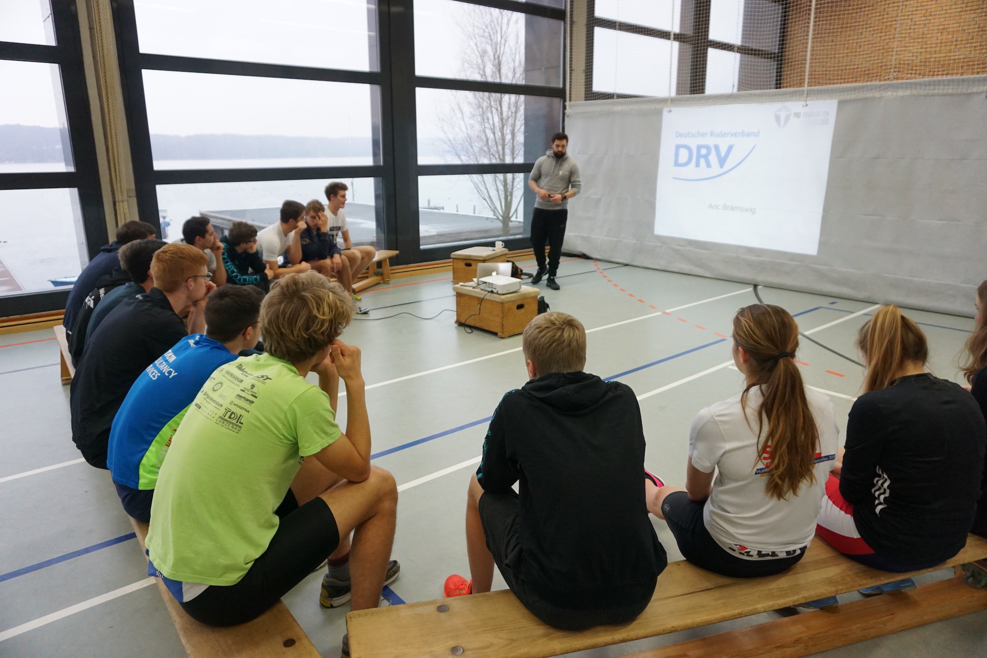Mit viel Elan ging es dann am Montag unter der königlichen Leitung von Andreas mit leichter Verspätung, aufgrund von Zugausfällen, los. Die erste Einheit war für einige Teilnehmer bereits der lange Fußweg vom Bahnhof zur Ruderakademie in der Ratzeburger Stadtmitte. Bei diesem Lauf wurde die These gefestigt, dass Ruderer nicht fürs Laufen ausgelegt sind. Der Wunsch nach einem Motorboottransfer konnte trotz der starken Bemühungen nicht umgesetzt werden. Alle waren sehr gespannt, wie die Zeit hier mit so vielen Gleichgesinnten werden würde. An fast allen Tagen standen neben den theoretischen Inhalten auch praktische Übungen an, die in der Halle, dem Seminarraum und einmalig auch in der Werkstatt stattfanden. Generell war es ein vielseitiger Lehrgang, auf dem nahezu alle Aspekte des Leistungssportes sowie des Breitensportes angerissen wurden. Augenscheinlich leisteten einige BFDler auf diesem Lehrgang mehr körperliche Betätigung als im gesamten Jahr zuvor.