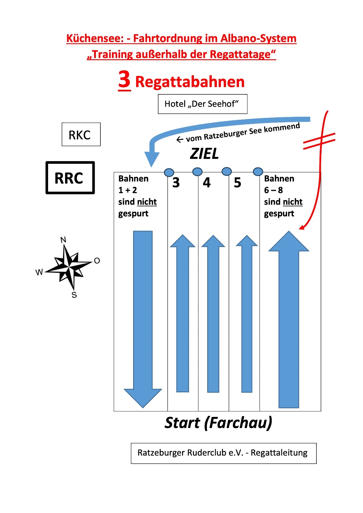 vom Ziel (Ratzeburger Ruderclub) zum Start (Farchau): außerhalb der Bahnen auf RRC-Seite